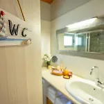 Bathroom facilities also include a separate toilet and a shower. Hair dryers and bath sheets are included for added comfort.